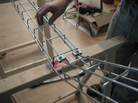 Das Metall wurde getrennt und gebogen um die Ecken mit Kurven zu überwinden. Überstehende Metallstäbe bekamen kleine schwarze Gummihütte, damit sich später keiner bei einer unbedachten Handbewebung verletzen kann.