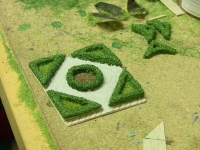 Gras wurde in die äußeren Ornamente wieder mit dem Elektrostaten gestreut, zwischen die Ornamente kam etwas grauer Kies und in die runde Mitte etwas Erdstreu - fertig ist das Modul.